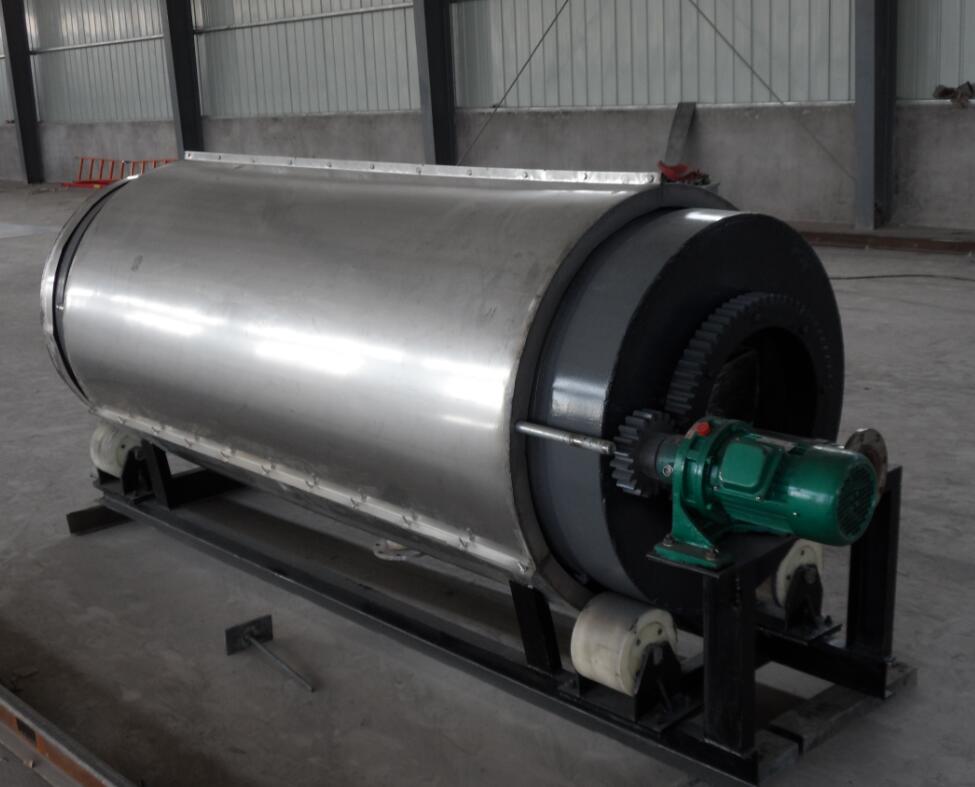 主电机带动套装的内、外转鼓全速旋转,物料由进料管连续引入,均匀分布到内转鼓内段滤网壁上,在离心力作用下,液相物穿过滤网和转鼓壁滤孔排出,经排液管排出机外,固相物截留在内转鼓形成环形滤饼层。内、外转鼓同速旋转的同时,在活塞推动下,内转鼓连续轴向往复运动,因而推料盘推动内转鼓滤饼层间歇不断地向外移动排出内转鼓,进入外转鼓进一步分离并形成环形滤饼层,内转鼓外端面则推动外转鼓滤饼层间歇不断地向外移动排出外转鼓,经刮料槽排出机外。