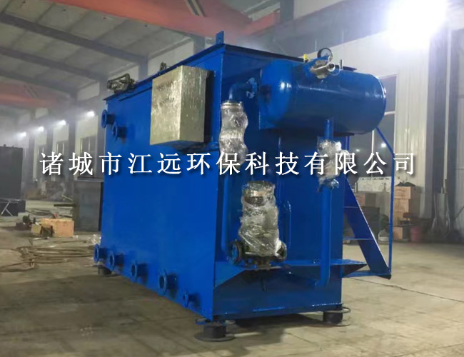 造纸污水经加药反应后的污水进入气浮的混合区,与释放后的溶气水混合接触,使絮凝体粘附在细微气泡上,然后进入气浮区。絮凝体在气浮力的作用下浮向水面形成浮渣,下层的清水经集水器流至清水池后,一部分回流作溶气水使用,剩余清水通过溢流口流出。气浮池水面上的浮渣积聚到一定厚度以后,由刮沫机刮入气浮机污泥槽后排出。二、安装、调试及注意事项